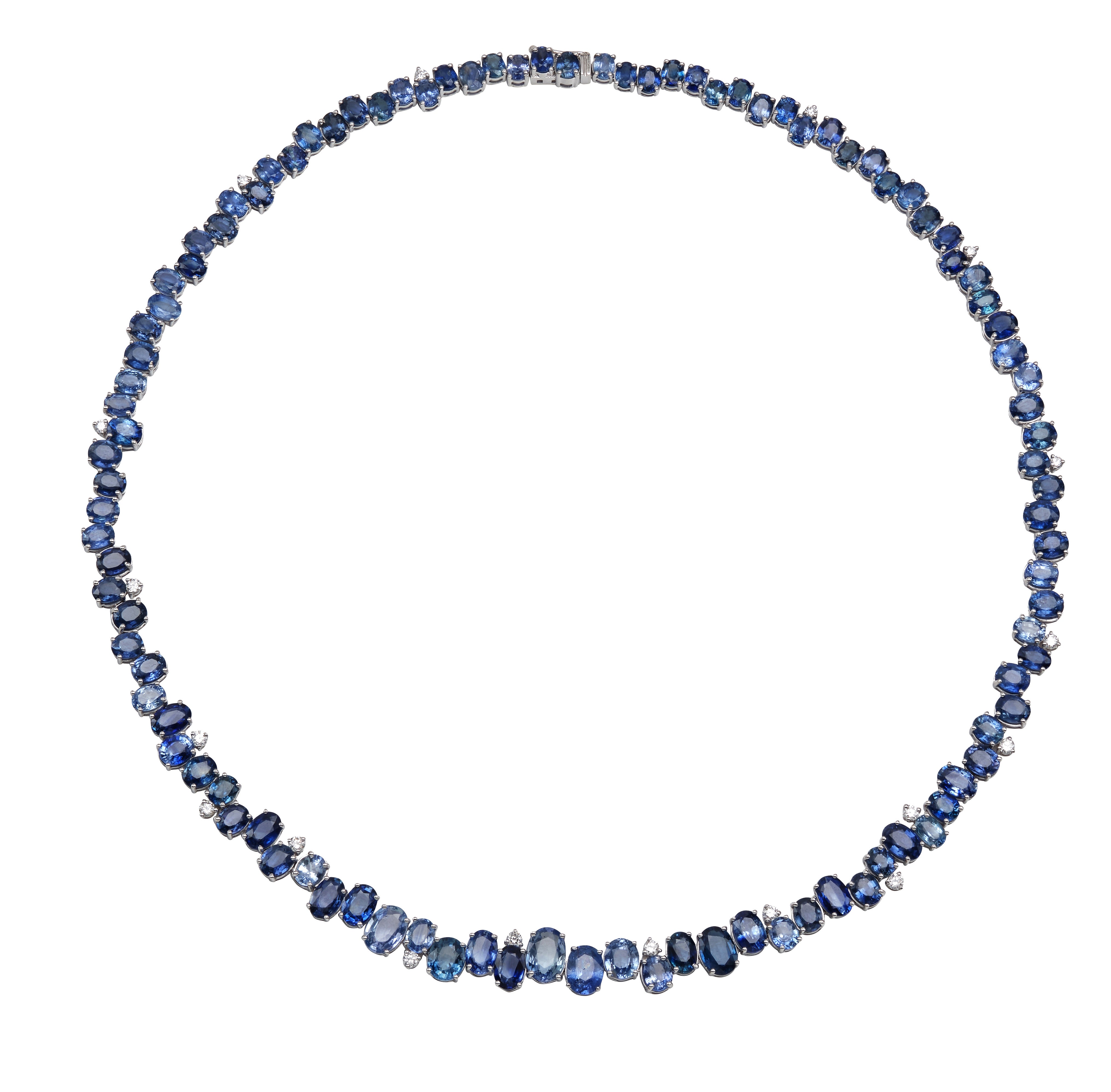 Ombré Sapphire Oval Diamond Zig Zag Necklace