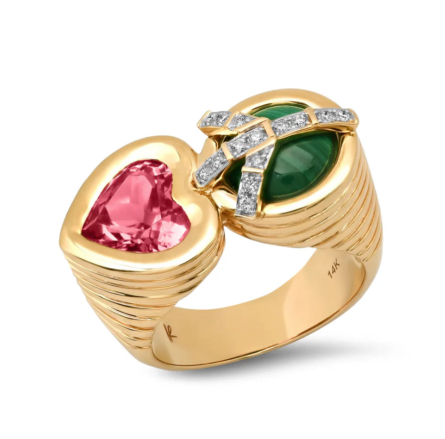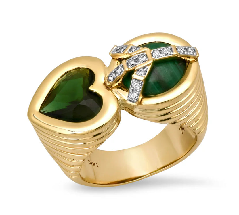 Peace and Love Ring in Malachite and Chrome Tourmaline