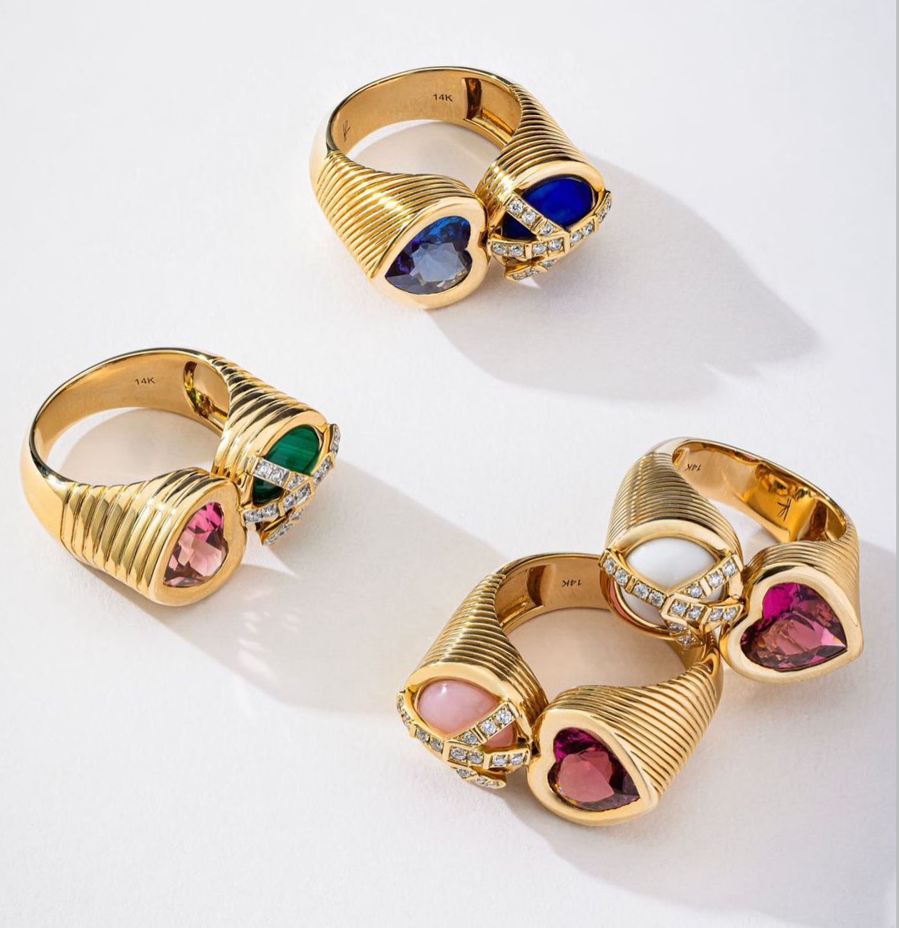 Peace and Love Ring in White Onyx and Chrome Tourmaline