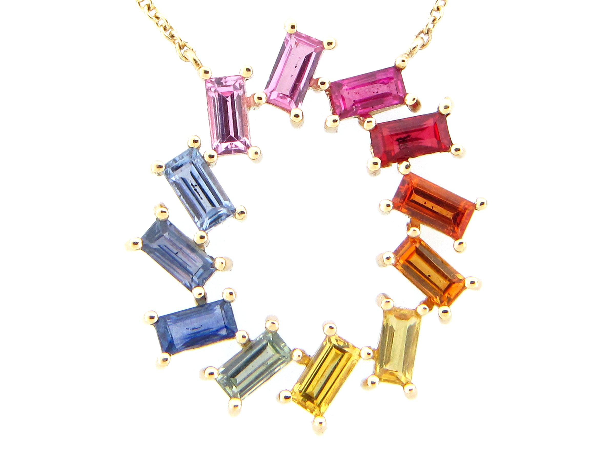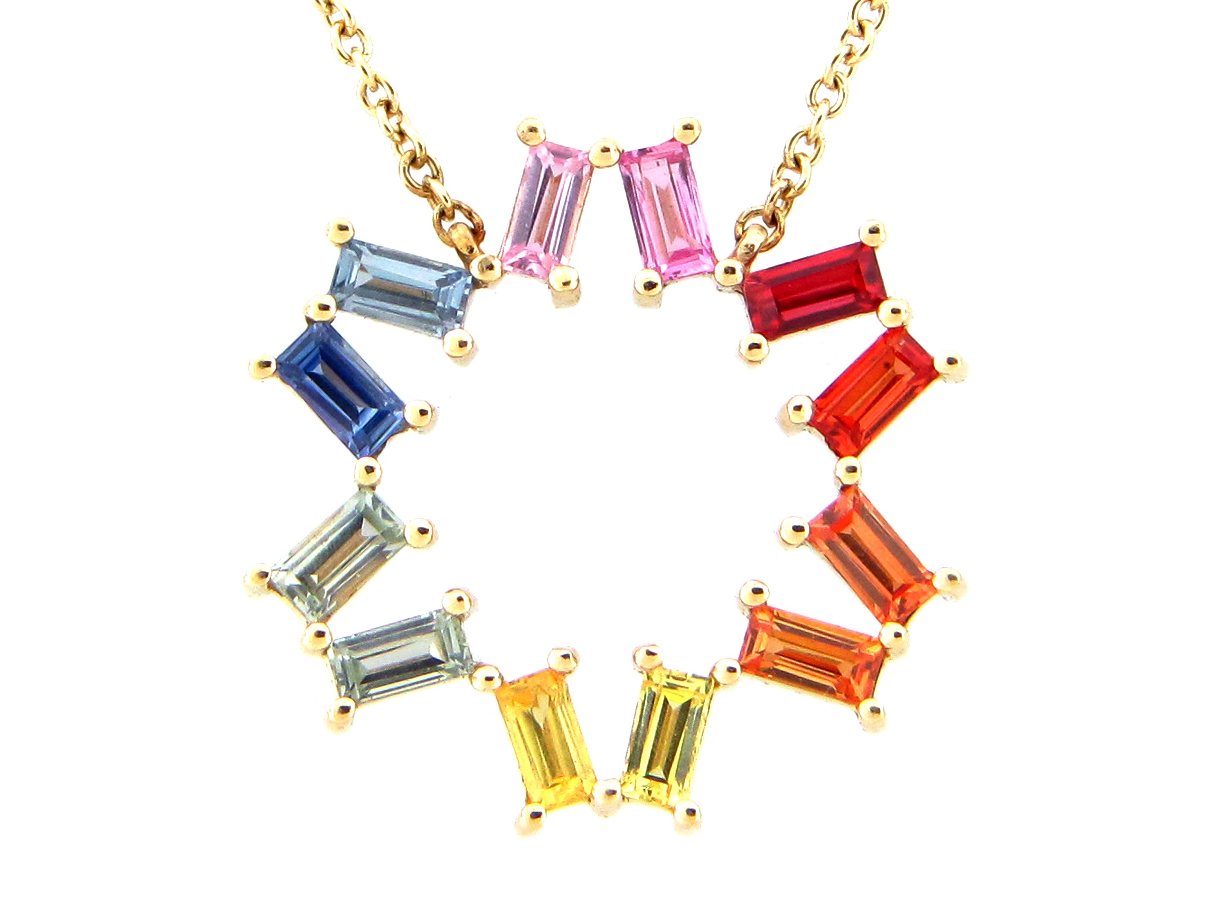 Rainbow Sapphire Baguette 6 Point Pendant Necklace