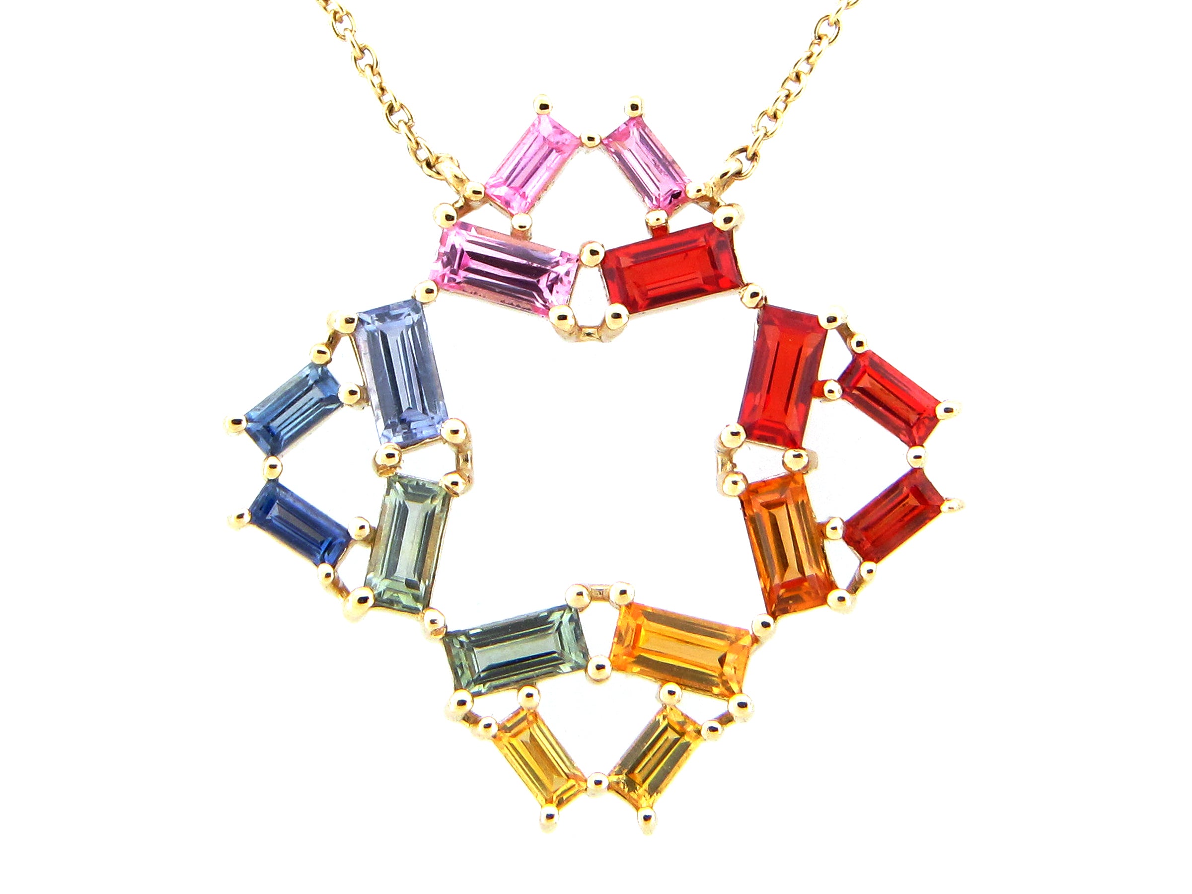 Rainbow Sapphire Baguette Pin Wheel Pendant Necklace