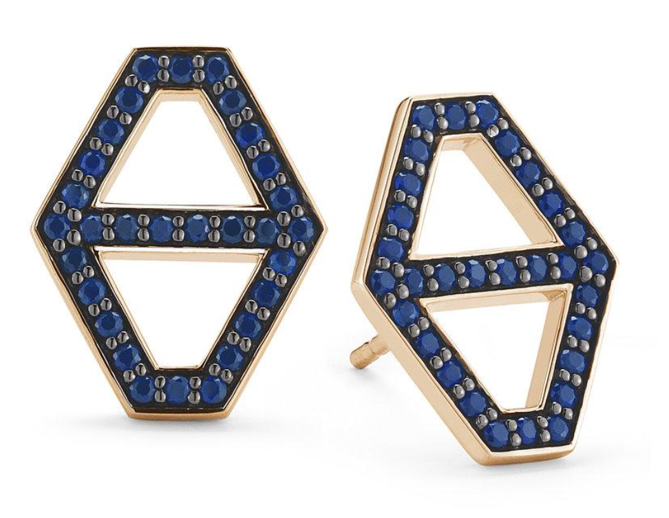 KEYNES 18K MEDIUM SIGNATURE HEXAGON SAPPHIRE STUD EARRINGS