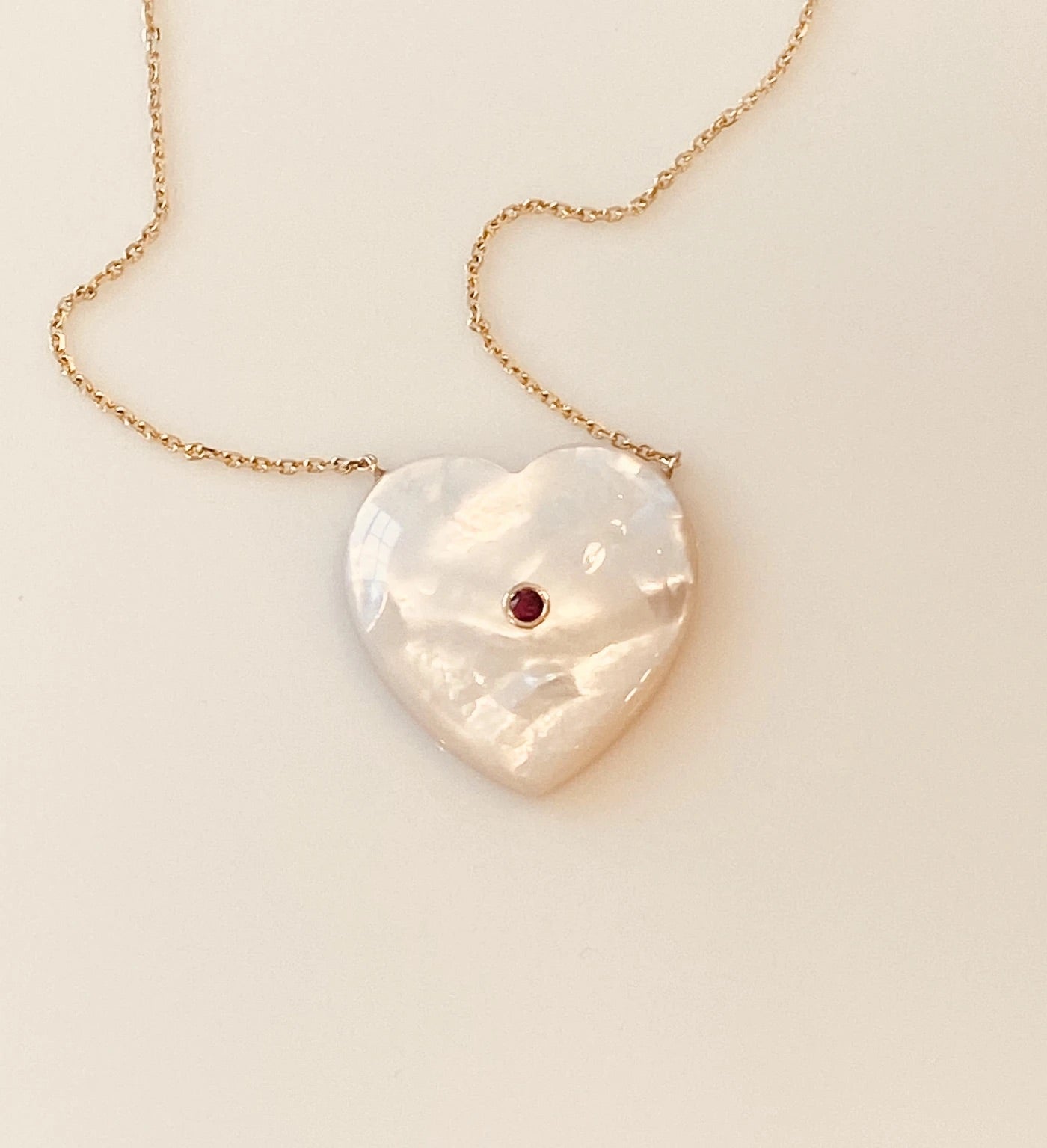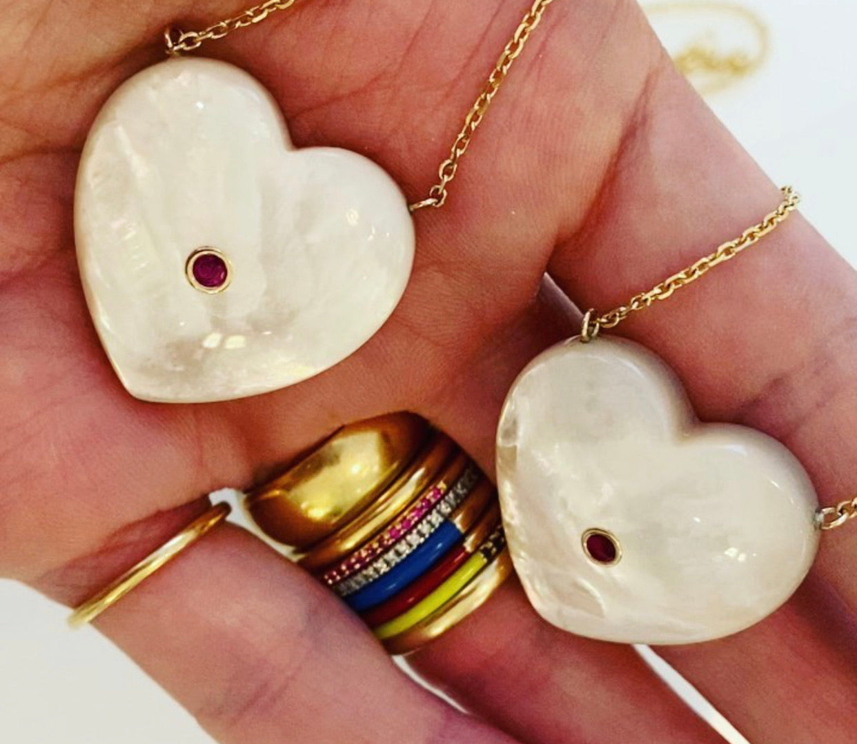 Medium Hamsa Necklace in Red Pearlized Enamel set on an 18 karat yellow gold chain